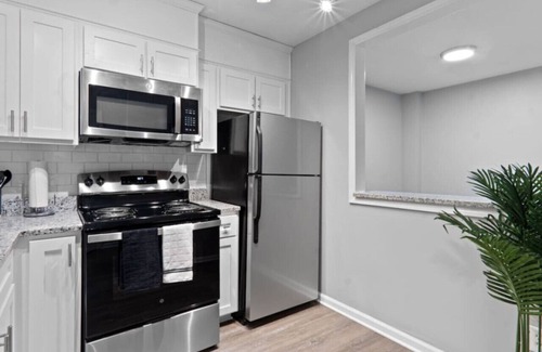 Stay in style in the eclectic city, ranked among the "Best Places to Live" by Money Magazine—Raleigh. This classy 500-square-foot (~48-square-meters) 1-bedroom apartment features Memory Foam King Beds for your comfort, Lightning Fast Wifi, a Height Adjustable Standing Desk, a Fully Equipped Kitchen, and other Lux Amenities—specially designed for your longer length stays!