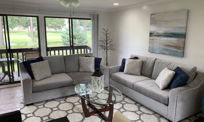 Escape to our recently renovated 2-bedroom condo, offering stunning golf course views. Immerse yourself in the picturesque scenery overlooking the Pine Golf Course, with smart TVs in every room for your entertainment pleasure. Enjoy the convenience of two newly redone swimming pools, as well as a walking-distance driving range. With modern amenities and a serene setting, this is the ultimate retreat.