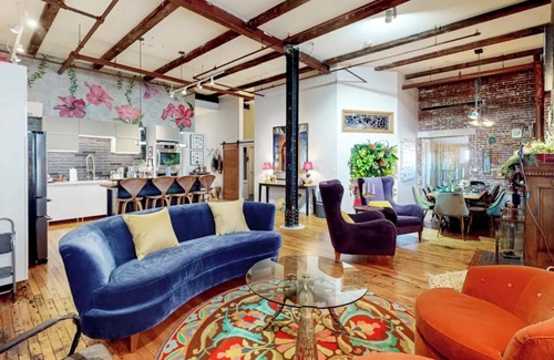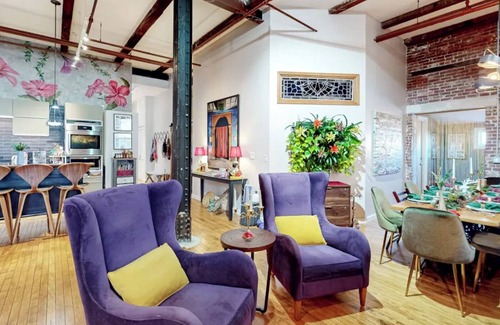 Stylishly decorated art loft walkable to the PMA and all live performance venues: Aura, Cross Arena, Merrill, Portland Stage, State Theater & One Longfellow Square. Surrounded by Portland’s finest restaurants, the hottest bars & eclectic retails shops in Old Port. High ceilings, cast iron beams, exposed brick, hardwood floors, large windows and beautiful art welcome you home after exploring Portland’s culinary treasures, visual & performance arts. Off street free parking. Elevator.