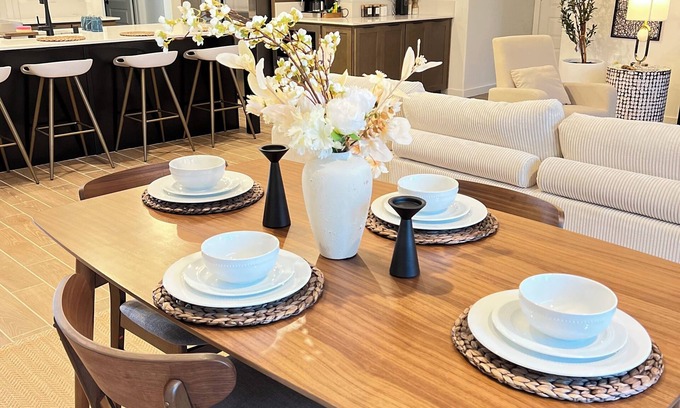 Relax and unwind after a day of exploring with the open concept living room that boasts of a brand new 70 inch smart TV, plush sofa, dimmable lights, light filtering blinds, and blackout curtains.