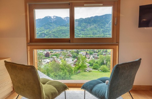A huge wooden dining table with elegant dining chairs is perfect for larger groups to gather around, enjoy fabulous meals, and take in the impressive backdrop. Most importantly, raclette and fondue equipment is provided!