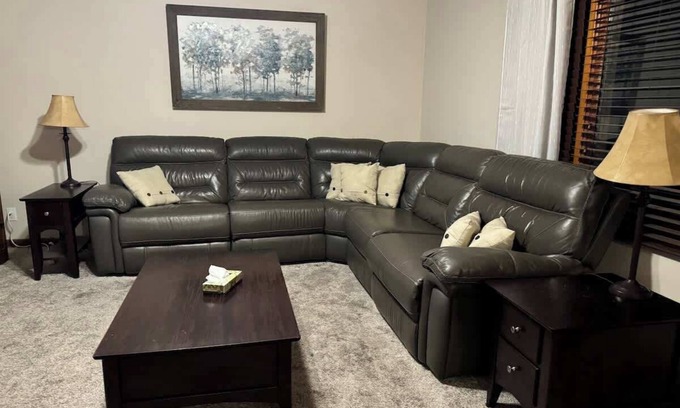 Our home offers comfortable spaces on every level. The main level features a welcoming living room, a dining area perfect for meals, and a fully equipped kitchen. It also includes a King bedroom with an en-suite bathroom, two additional Queen bedrooms, and a full bathroom. Downstairs, you'll find another living room, a convenient laundry area, a Queen bedroom, a bedroom with two twin beds, a King bedroom, and another full bathroom. Enjoy a relaxing stay with comfortable beds and well-appointed living areas. Outside, you can enjoy a beautiful backyard with plenty to do included!