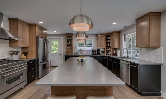 The lodge was newly renovated with high end finishes to enhance your vacation experience and stay. The home comes equipped with a complete chef's kitchen and a large dining table with 10 chairs to meet all of your dining needs.