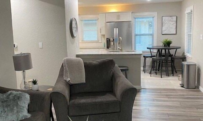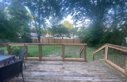 Updated home in a quiet neighborhood centrally-located. Great for a long weekend get away or perhaps a luxurious stay when traveling for work. Each bedroom has a comfortable king bed with soft linens and plenty of pillows. Each bedroom has a smart TV mounted on the wall. Enjoy a well stocked kitchen and pantry. Sit on the front covered porch or enjoy the fenced in back yard deck anytime of day! Plenty of parking.