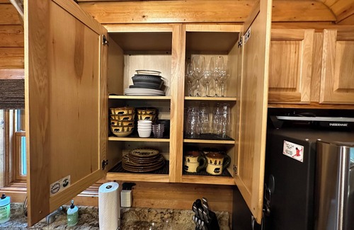 The kitchen features all new appliances (stove, refrigerator and microwave), dishes, pots and pans, glassware, baking dishes and accessories needed to cook a full meal. There is also a full-stocked coffee bar with both Keurig and regular options to help start your day. You will also notice the newly installed hand-chiseled granite countertops.