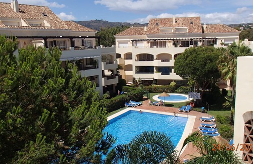 The spacious and comfortably furnished apartment is located in the luxurious Hacienda Playa resort on Marbella's most beautiful beach.