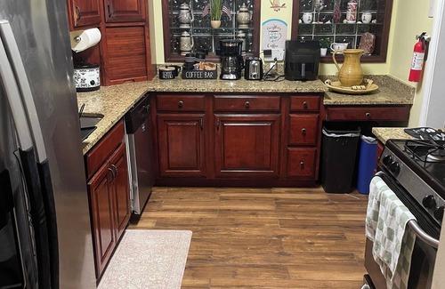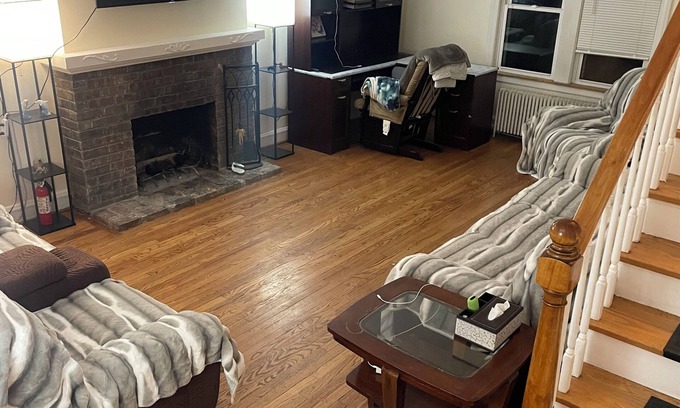 Escape to a marvelous 3-4 bedroom house in Brookfield. This cozy retreat features 1 queen bed, 1 full bed, 1 toddler bed, 2 twin trundle beds (4 twins total), and 1 portable crib. Unwind in the bathroom with a bidet and jetted bathtub. Relax in the large living room with a fireplace and smartTV with preloaded channels, and send the kids to their own living room - a second living room with an extra trundle twin bed for sleeping, a bongo set, keyboard and guitar for musical fun, and a second TV with Roku, Xbox 360 with games and PS4 with games. There are window AC units in the two large bedrooms upstairs and main living room and dining room. Also enjoy an outdoor grilling area, fire pit with chairs, and a deck to eat/host outdoor activities. Owner lives in basement unit so the garage, basement, front hallway closet, and small bedroom closet are locked. The backyard may be shared with owner, but owner mainly only passes through and is rarely home on weekends. Parking is free and unlimited on street. Must park across the street on Thursdays. The house is only 15 minutes from midway airport, 20 minutes from Ohare airport, and a 7 min walk to BNSF Metra Brookfield train station. It is also about 15 minutes walk to Brookfield zoo. Also, please note the bathroom is one the 2nd floor with the bedrooms as this is a cape cod. There is NO bathroom on the main floor, so it is not wheelchair accessible. There is a portable toilet that could be provided if needed to use in the back room /2nd living room/ additional sleeping room area (in case there is an older adult who cannot go up and down stairs other than the porch to get in the house). That room is located behind the kitchen in the back, so a curtain could be put up for privacy if needed.