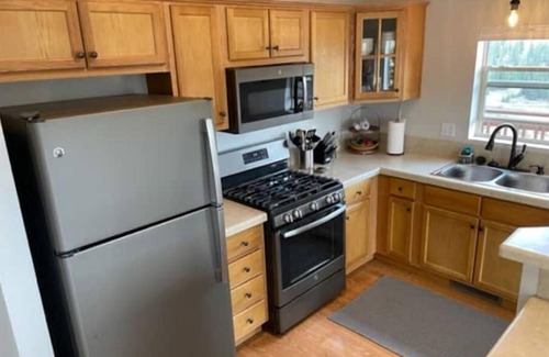 The home has a fully equipped kitchen for you to create your favorite recipes and includes cooking oil, basic spices, flour, sugar, and a few other goodies. If you forget an item, Fairplay has the closest grocery store and is about a 30-minute drive.