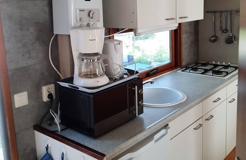Attention! Currently, no running water can be offered in this mobile home. Water bottles with a tap are provided and you can always use the heated and clean sanitary facilities at the campsite. Toilet can be used inside with a bucket of water.