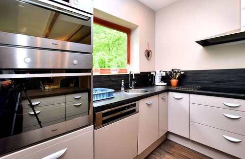 Spend the evenings on the terrace or in the furnished garden with a hot barbecue and a glass of wine. There is a wood stove in the sitting room for cozy hours with the family. You can have fun with the table football while kids try the play equipment. 3 pets can stay for 20 euro per /Pet/Stay. Additional facilities include parking and free WiFi. For little guests, a children's bed, high chair, and baby bath are provided.