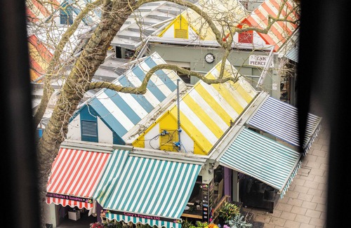 Wake up above one of Britain’s oldest and most colourful markets. The Old Post Office is a spacious, design-led two-bedroom apartment perched just above Norwich Market, right in the middle of the city’s historic core. From your living room, you’ll look out over candy-striped rooftops, a gothic church spire, and the winding pedestrian lanes that give Norwich its charm.