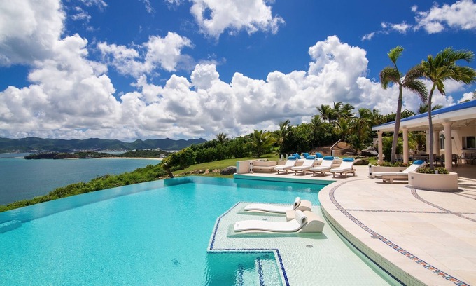 Discover the enchanting Luxurious Cliffside Villa, an idyllic wedding accommodation nestled in the heart of Saint Martin. With breathtaking views of the endless sea and the neighboring island of Anguilla, this stunning property offers the perfect backdrop for your dream wedding. Accommodating up to 28 guests, the villa is designed to create treasured memories while providing ample space and comfort for you and your loved ones.