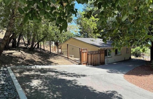 Relax with the whole family at this peaceful place to stay. Completely separate home with own driveway in the middle of the red woods, but 5 min away from downtown. Only 100 yards to a wonderful trail with views of the Silicon Valley