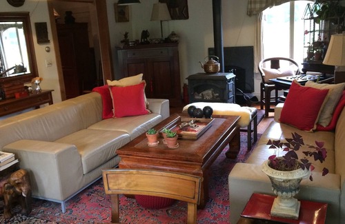 Relax and enjoy the quiet of the country at Flat Rock Farm. The house is a renovated barn built with traditional post and beam construction, many of which have been left exposed as a nod to the