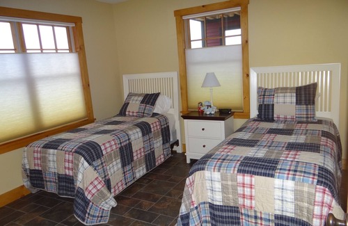 • twin bedroom has 2 extra long twin beds and ensuite bathroom with a tub/shower combo