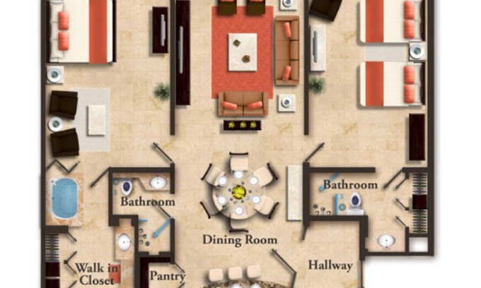 - Upscale Amenities: Enjoy a master suite featuring a king-size bed and an en suite bathroom with a whirlpool tub, alongside a second bedroom equipped with two queen-size beds and its own bathroom.