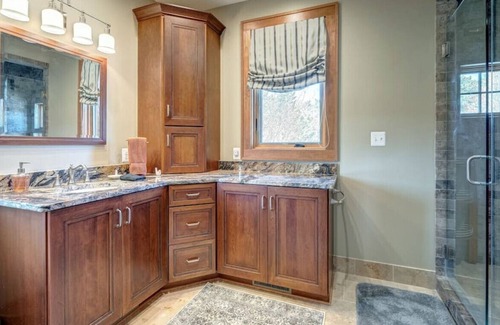 Sleeping Arrangements: Three large primary suites, separated on each level, make this chalet unique and extremely comfortable for all of your guests. On the highest level you will find a queen bed with ensuite. On the main level you will find a queen bed with ensuite with a walkout to an outside terrace. On the lowest level a queen bed with ensuite is tucked away from the game room.