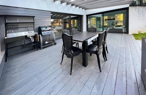 Unique, modern vacation home with pool, outdoor jacuzzi and lake view - in the middle of nature.
