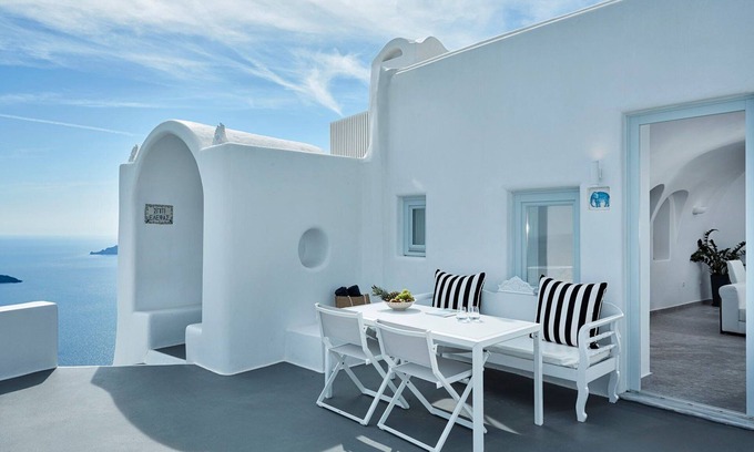 Best-rates for the Firostefani villa starts from $8,337 per night with includes Ocean View, Security/Safety, Bedding/Linens, Guest Services, Hot Tub, Pool, View, Balcony/Terrace, Child Friendly, Internet, Kitchen, Laundry, Private Pool with all other amenities. Perfect for Weddings is committed to ensuring every guest experiences a comfortable and extraordinary stay, whether planning a romantic getaway, a honeymoon, a pet-friendly stay, or celebrating with the entire wedding party.