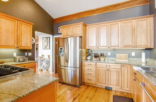 The panorama of the mountains rising up behind Lake Cushman look like a painting that you would want to dive into - and now you can! Start your mornings with yoga before the stunning vista at this luxurious lakefront home. Guests of the main bedroom can step right onto the enormous private deck, which is also accessible from the main living area.