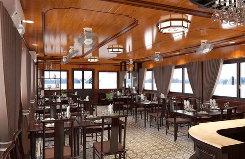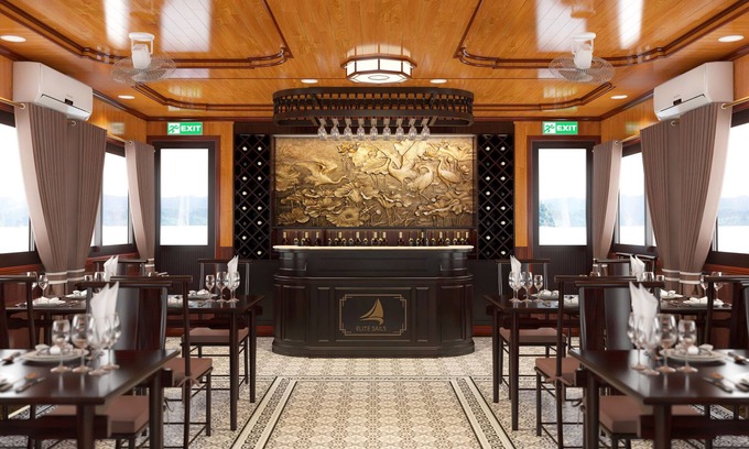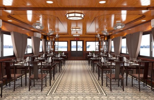 While cruising through a maze of toweling limestone mountains, you revel in the elegance restaurant that full equipped with air-conditioning to enjoy your delicious lunch with Vietnamese fusion cuisine and stunning views of the bays along the way.