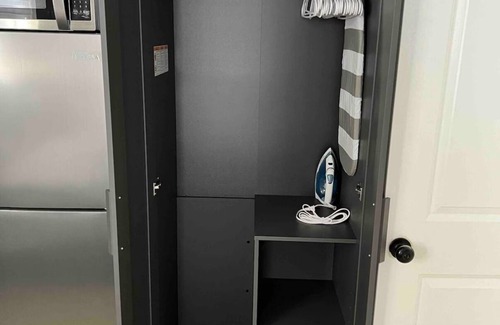 1 private master bedroom and features a large private bathroom, a queen size bed for 2 guests, large closet, a smart T.V small refrigerator & microwave for comfort, and small dinning table with 2 chairs with new appliances and fully equipped.