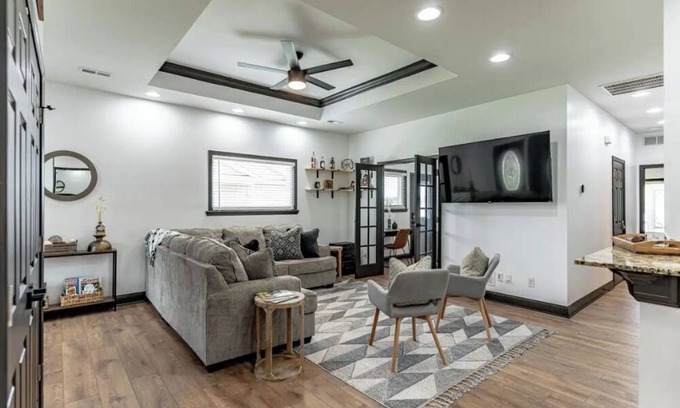 Have fun with the whole family at this modern, stylish place! Minutes to downtown Elizabethtown, 1.8 miles to Elizabethtown Sports Park and Bluegrass Sportsplex, convenient to I-65, and an easy drive to Fort Knox make it a desirable location. Luxury latex foam mattresses and smart TVs in the suite rooms, brand new paint and hardwood look flooring throughout, immaculate cleaning, and smart air purifiers will make you never want to leave!