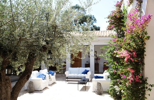 Recline on the sun loungers on the private terrace right by the beach, or on the library's vintage furniture from the 18th & 19th centuries. This 3 story villa also benefits from a huge central patio adorned by a local olive tree.