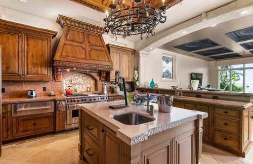 * A fully stocked gourmet kitchen with high-end appliances and generous counter space