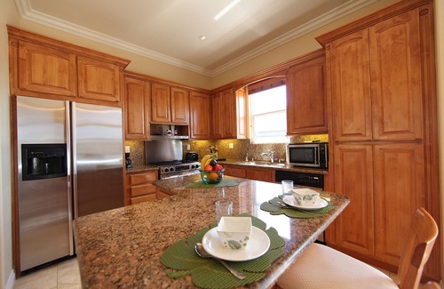 • The modern kitchen has granite countertops and island, stainless steel appliances, a peaceful dining area and is equipped for all your cooking needs.