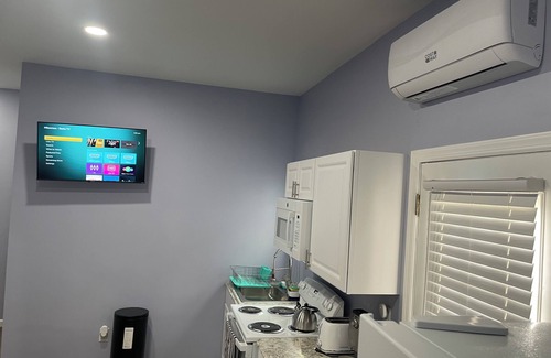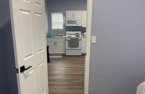 Come and enjoy this luxurious and pristine apartment, located by major highways, near several country clubs, with a spacious bedroom, loaded with comfortable beddings, closet, televisions, full bathroom, kitchen and a living room; ideal for 2 guests. This luxurious and neatly organized apartment has a private entrance, is equipped with washer, televisions, waffle maker, toaster, refrigerator/freezer, microwave, stove, towels, etc. Private parking available with close proximity to various stores. Perfect location for a calm, cool getaway!