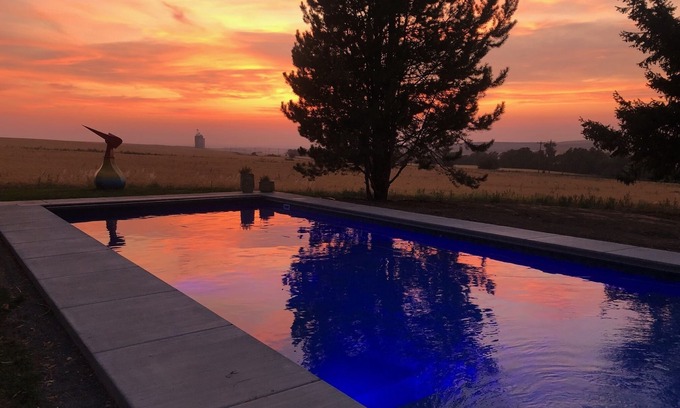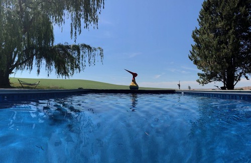Close to town, yet private, Andare is your home away from home in wine country. We’re 3 miles from the airport, and 5 miles from charming & vibrant downtown Walla Walla. Our 10-acre oasis allows plenty of space to play and relax; enjoy our signature coffee on the patio, a dip in the heated pool, & the incredible sunset with a chilled glass of rosé. Come stay and savor the sensory pleasures of being among friends - cooking in the kitchen, playing board games, dance parties under the stars, and relaxing with your new-found winery favorites. This house is best with adult couples- designed to accommodate 4 couples in harmony. On-site caretakers stay in a separate building on the property.