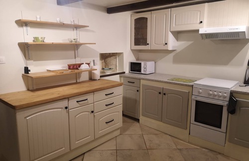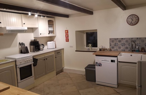 The gite features uplit walls, a balustrade overlooking the lounge and even a feature well in the dining area. The fully equipped kitchen has every amenity including a dishwasher, blender and bean to cup coffee machine. The lounge/dining area features a beautiful French dining table, big comfy couch in the lounge and a Samsung 50" smart tv with French channels, plus Netflix and Amazon movies and an antique Godin log burner.
