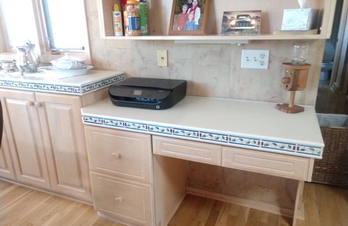 Huge bay window, in the livingroom, looks out on colorful finches and many other birds at the feeder. Comfortable electric reclining seating.