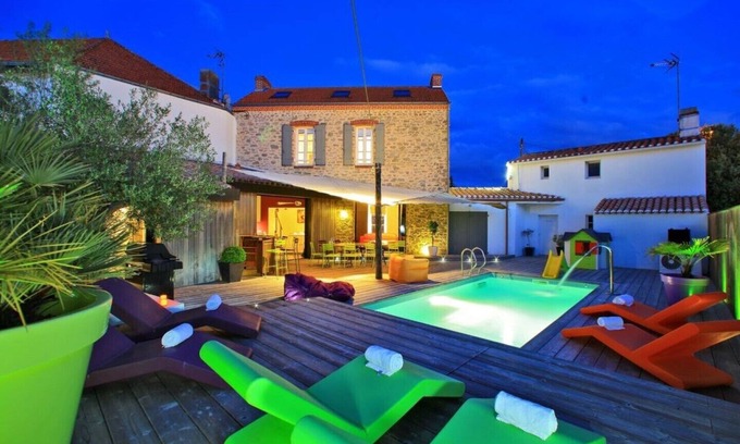 Best-rates for the Noirmoutier-en-l'Ile villa starts from $771 per night with includes Pet Friendly, Wellness Facilities, Fireplace/Heating, Parking, Designated Smoking Area, TV, Private Pool, Balcony/Terrace, Spa, Entertainment, Laundry, Sports/Activities, Guest Services, Breakfast, Child Friendly, Kitchen, Pool, Bedding/Linens, Hot Tub, Internet with all other amenities. Perfect for Weddings is committed to ensuring every guest experiences a comfortable and extraordinary stay, whether planning a romantic getaway, a honeymoon, a pet-friendly stay, or celebrating with the entire wedding party.