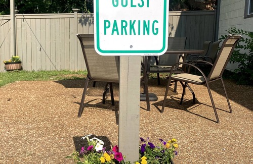 The beautiful, exclusive patio is surrounded by a 6 foot privacy fence, offering guests a hidden oasis to relax and reconnect. A patio table with an umbrella invites you to enjoy your meal outside. Right off the patio is an exclusive guest parking space directly outside the main entrance to the suite.