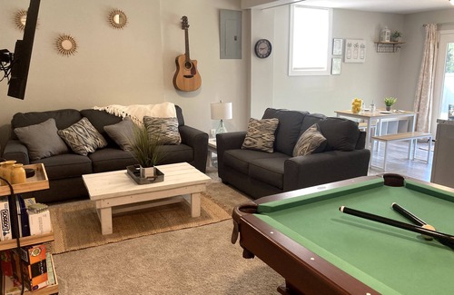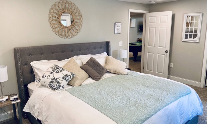 Welcome to our cozy retreat, where comfort meets entertainment! Unwind in a luxurious massage chair, snuggle up in a spacious king bed, and challenge your friends to a fun game of pool. Whether you're seeking relaxation or a little friendly competition, this space has it all for a memorable stay only 20 minutes from downtown Nashville!
