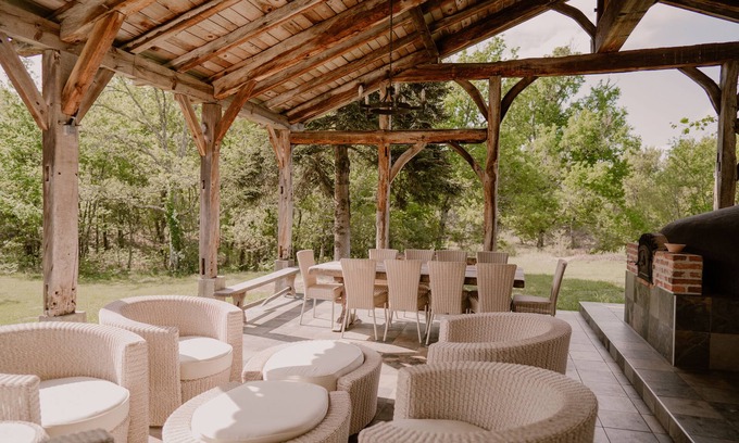 A old world house with all modern convinces, this is eco-friendly luxury vacation home. The house runs mainly on solar panels, the lake as a wonderful natural filtrated swimming pool, the hot tub and sauna run of wood burners, and the owners have a large veggie garden that you will be able to purchase fresh vegetables when available, straight to your table!