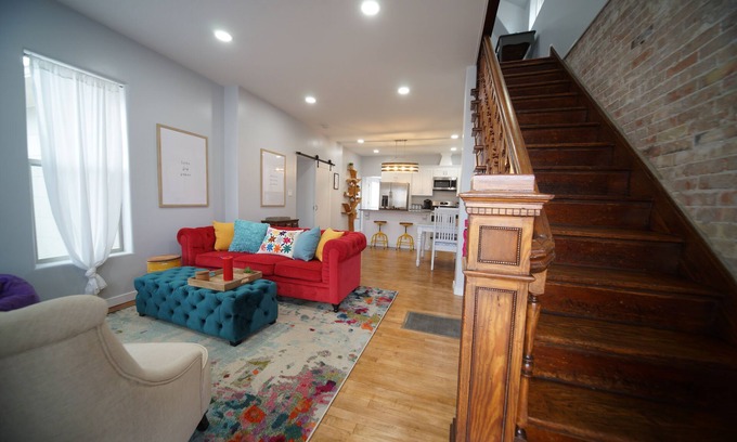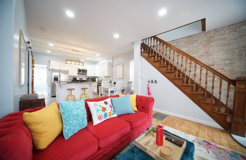 Grand Delight House: Beautiful 3 bedroom, 2 bathroom includes a king-sized bed in the main floor master, a queen bed and two twins upstairs in this just-renovated turn of the century gem. A fully loaded kitchen will satisfy your inner foodie. Cook like you're at home, gourmet style, served at your own farmhouse table or on the back deck al fresco. Equipped with air conditioning, fast Wi-Fi, washer/dryer. Easy access to highway, restaurants, ample street and driveway parking. Truly charming!