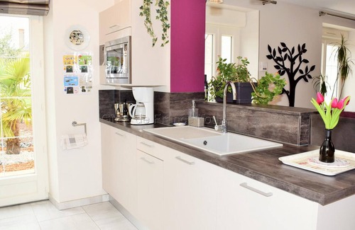 An ideal address for a relaxing and restful stay in Touraine. Ground floor (underfloor heating): living room-lounge-fully equipped kitchen (sofa, 1 Cookéo food processor available, etc.), 1st bedroom equipped for people with reduced mobility (TV, 140 cm bed, shower room/wc), wellness area (spa, sauna, fitness area, shower), wc. Upstairs (reversible heating/air conditioning): 2nd bedroom (TV, 2 80 cm beds that can be twinned into a 160 cm bed, shower room, wc), 3rd bedroom (TV, 160 cm bed, shower room, wc). Wood stove (extra charge for wood: €8/week). Available for babies: 1 bed, 1 travel cot, 1 high chair, 1 bathtub, 1 changing mat, 1 baby relax. WIFI connection. Heating extra (according to meter reading). Private enclosed garden (pétanque area, lockable bicycle shelter, etc.). Included in the price: sheets (beds made). Non-smoking cottage. Here is a beautiful house, superbly restored, very comfortable, with a wellness area (spa, sauna, fitness, shower) just for you: a real guarantee of a successful stay in Pays de Bourgueil/Chinon. As for the other activities that will punctuate your vacation days, you are here in Touraine, in the heart of the Loire Valley Châteaux region, and there are many historical monuments nearby that will enrich your days: Chinon, Rigny Ussé, Azay le Rideau, Langeais and Villandry, or the magnificent Fontevrault Abbey in Anjou. In this Bourgueil appellation wine region, gastronomy is of course also omnipresent, thanks also to the proximity of other renowned vineyards (Chinon and St-Nicolas de Bourgueil). On the Loire Anjou Touraine Regional Nature Park, very close to Anjou, you will enjoy unspoiled nature here, ideal for walking, horse riding or cycling, and fishing in the Loire, very close by.