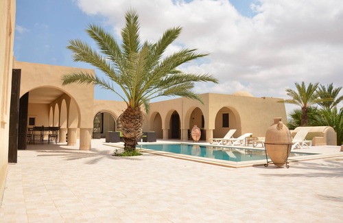 Located in Mellita, this 6-bedroom, 6-bathroom riad lets you experience it all. Fans of nature and the outdoors will love being 33 minutes by car from Playa Sidi Mehrez. With convenient covered onsite parking, you'll be ready to make the 14-minute drive to Houmt Souq Harbour or the 13-minute drive to Borj El K'bir Fort.