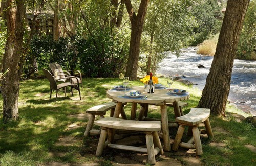 The cabin was originally built by Colorado Midland Railroad workers in 1896, it was restored a century later in 1996. The cabin was renovated again in 2005 and 2015 . The cabin is decorated in an elegant mountain style and includes luxurious linens, comfy robes, down pillows, radiant in-floor heating, fireplace and all the amenities you would expect at a nice hotel. The sliding glass door opens up to the views and sounds of the Frying Pan River rushing by. The cabin guests' are welcome to fish on the Frying Pan River in front of the cabin and also upriver towards the main lodge.
