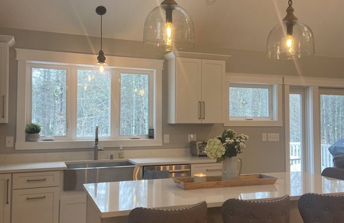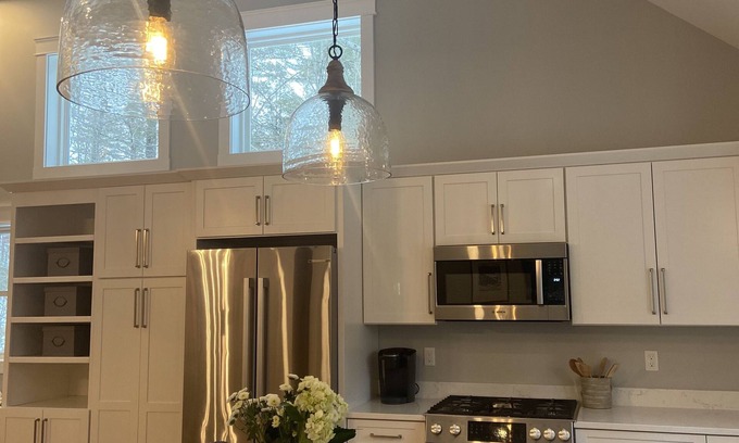 Absolutley stunning, fully renovated four bedroom home on the Saco River. Relax on our quiet, private association beach, float down the river with our two kayaks and five durable rafts. Enjoy stunning views of the river from our upper deck where you can feel away from it all. Our home has three bedrooms and two bathrooms on the main floor and one bedroom with full bath on the second floor. We have a two car garage and an unfinished basement that leads out to a new patio with an outdoor shower and river views. We have a whole house water filtration system of our well water. From the patio, it is a two minute walk to our private association beach. The kitchen has all stainless steel appliances, a beverage refrigerator, a keurig with coffee and tea pods, an automatic drip coffee maker, an electric tea kettle and all the amenities you need for eating at home while on vacation. Many families have created wonderful memories year after year at this special home.