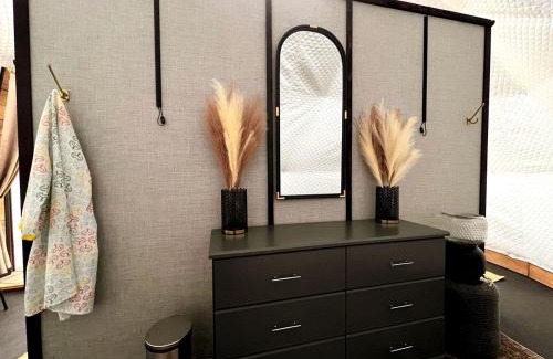 Luxurious Rustic Dome with Private Deck and Picnic Table in California offers accommodations in Wheatland, 30 miles from William Jessup University. Guests can benefit from a patio and an outdoor fireplace. The accommodation provides a shared kitchen and a mini-market for guests. A fridge, a stovetop, and kitchenware can be found in the kitchen. The luxury tent offers a variety of wellness options, including a sauna, a spa center, and yoga classes. The luxury tent has a picnic area where you can spend the day outdoors. Sacramento International Airport is 45 miles away.