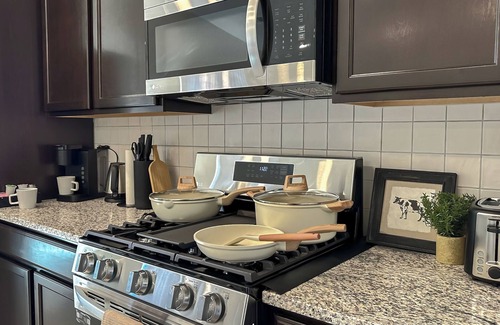 This spacious 3-bedroom home offers comfort and modern amenities in every corner. Each generously sized bedroom includes a smart TV for your entertainment. One bedroom has a dedicated office desk, ideal for remote work. The master suite features a king bed, a walk-in closet, a spa-like bathroom with a separate shower, and a luxurious bathtub. Bath towels are provided for each guest!