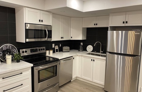 Totally Independent apartment NOT SHARED: Luxurious newly constructed & furnished fully equipped independent 2 large bedrooms, 2 full baths apartment in an upscale neighborhood of Mississauga, 2 mins to Highway, 20 mins to downtown Toronto and close to Mississauga Golf and Country Club. This tastefully furnished modern lower-level unit has new kitchen, indoor fireplace and Independent washer dryer for guests only. We strive for cleanliness and provide with all the luxurious for long and short term staying experience to our guests.