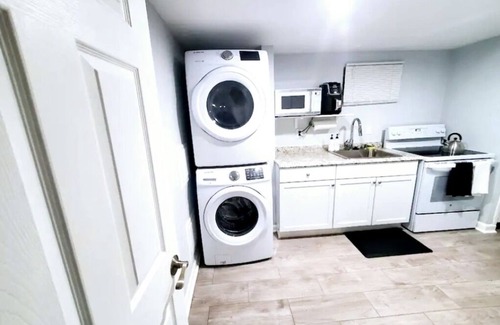 Forget your worries in this spacious and serene private suite with private access, just blocks away from Fedex Field. Utilize the luxury of a full kitchen as well as a washer and dryer. Watch a movie or live tv on a huge, high-end 75 inch LCD smart TV. Kick back and relax with electronic, reclining, lumbar supported genuine leather sofas with built in USB ports. Enjoy your stay minutes away from the nation's capital sites, scenes and night life