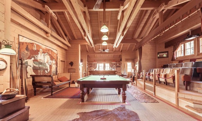 Unusual for a mountain chalet, a large snooker room with a bar is also available. This room can be transformed in minutes into a fully equipped home cinema, with seating and sofas, and a large retractable screen, all controlled by a fully automated system (including Netflix, YouTube and a Swisscom TV box). Built entirely of wood, the billiard room is stunningly elegant, with a sobering touch of British colonial style.