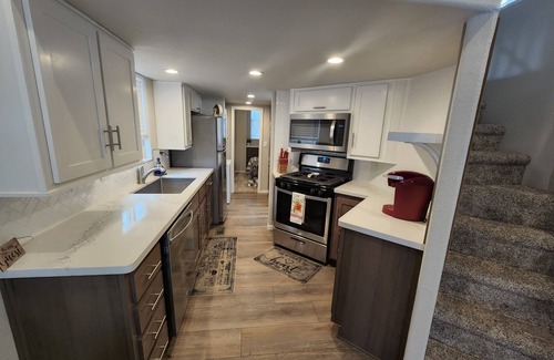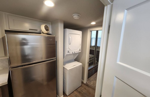 Our Property offers a private bedroom with a Queen bed, a loft with two twin beds perfect for the kids(low ceiling) and a pull out sleeper chair in the living area. The Kitchen is outfitted with everything needed to cook, eat, clean and make an evening cocktail. A gas range for the home cookers, a crock pot for the slow cookers, a propane BBQ grill for the outdoor cookers and a Keurig for the coffee drinkers. Washer and dryer onsite with the fixin's so no need to go find a laundromat.