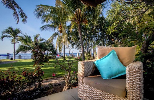 The villa Seaview has a lush tropical garden of 1000 m2 with high coconut palms and a front Seaview. There are no private beaches in Bali but the place is very remote. As our garden is on top of a seawall, we offer more privacy than other seafront homes in north Bali that are at the same level as the beach.